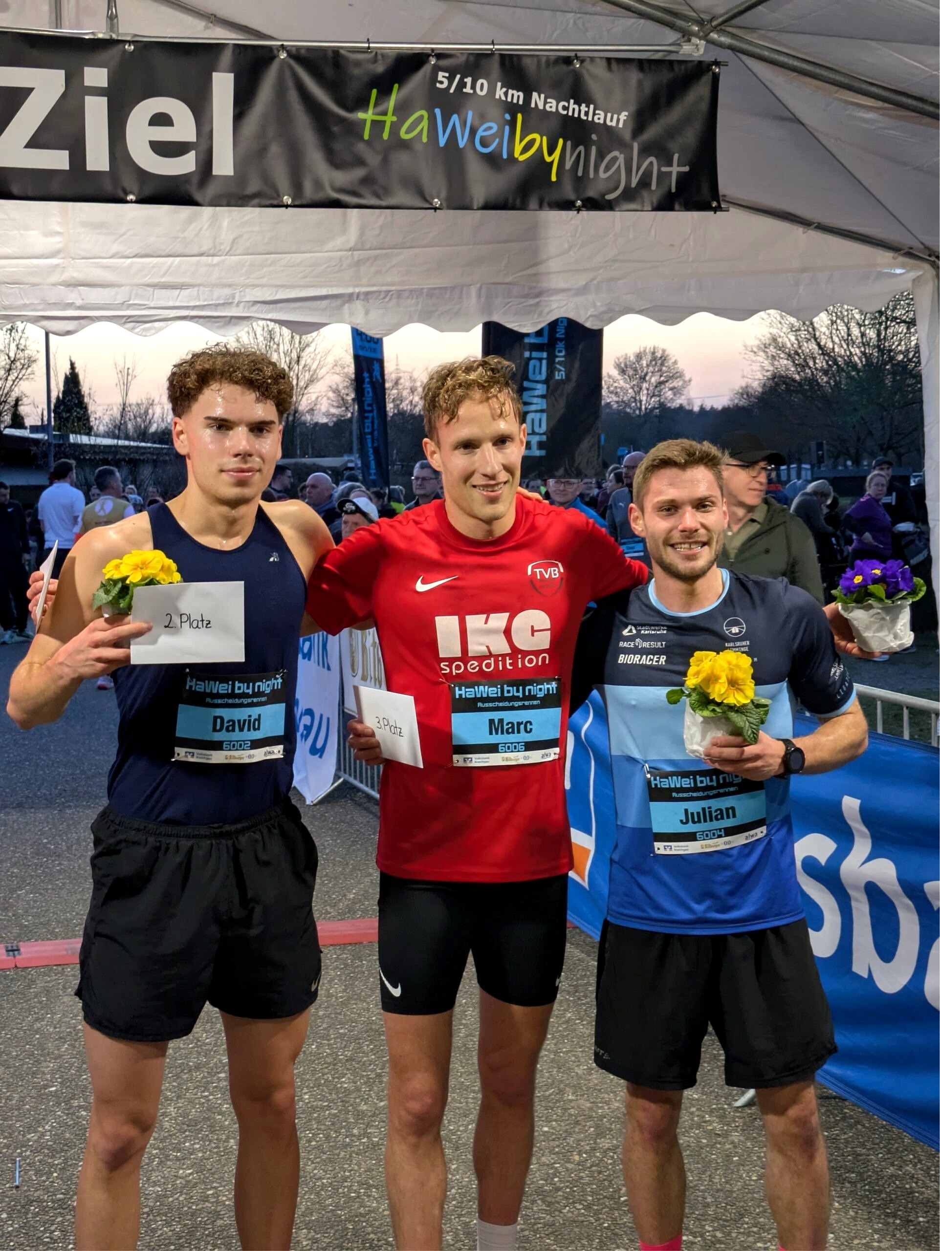Der Wettkampf beginnt mit einer namentlichen Vorstellung der Athleten im Rahmen eines Walk-on. Nach dem Startschuss legt der merklich beflügelte Alexander Eck direkt mit einem Sprint los und zieht das Feld von vorne auseinander. Alex hat nicht vor das Rennen durch ein taktisches Abwarten dem Zufall zu überlassen. Dem hohen Tempo muss er jedoch in der zweiten Runde Tribut zollen: Während die Herzfrequenz und das Laktat in den Beinen nach oben schießen, reduziert sich das Feld sukzessive. Das extrem hohe Tempo ist an dieser Stelle die einzige Konstante. Julian Beisel hält sich zu Beginn des Rennens verdeckt, arbeitet sich aber Runde für Runde bis auf Platz vier vor. Im tiefroten Bereich machen nun die verbleibenden vier schnellsten Läufer die Podiumsplatzierungen auf der letzten Runde unter sich aus. Angetrieben vom Lemminger Fanlager sichert sich Julian Beisel in einem umkämpften Zielsprint den dritten Platz mit einer Zielzeit von 7:54min (2:54min/km).