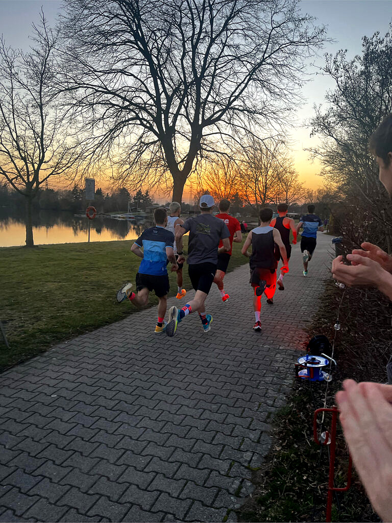 Mit extrem schweren Beinen und wenig Sauerstoff in der Lunge folgte unmittelbar im Anschluss an den Ausscheidungswettbewerb – mit lediglich 15 Minuten Pause – der Startschuss des 5km-Laufs. Etwas mehr als eine Stunde später startete die 10km-Edition. Die Strecke wurde in der Dunkelheit mit Fackeln markiert, die neben der funktionalen Orientierung auch eine besondere visuelle und atmosphärische Komponente einbrachten. Ganz nebenbei konnte Saskia Haug in den LG Region Farben über die 10km bei den Frauen mit einem neuen Streckenrekord von 34:41min triumphieren. Den Abschluss bildete eine umfangreiche Zielverpflegung, die den teilnehmenden Athlet:innen nach den intensiven Belastungen mehr als gerecht wurde.